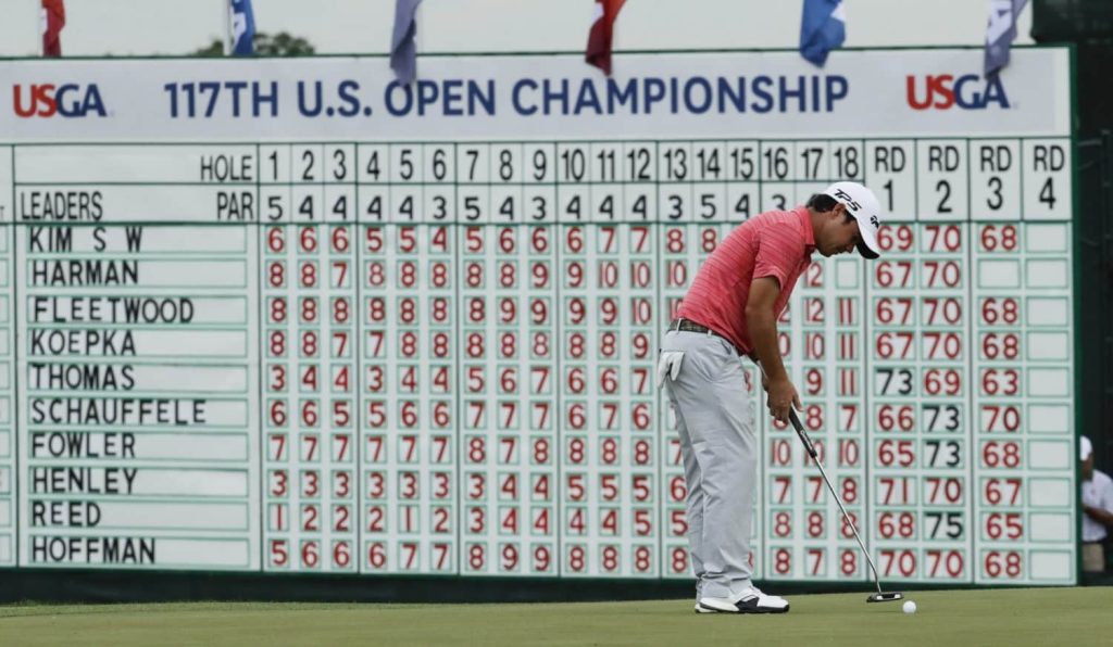 ERIN, Wis. (AP) — Players are on the course for the final round of the U.S. Open in blustery conditions at Erin Hills.